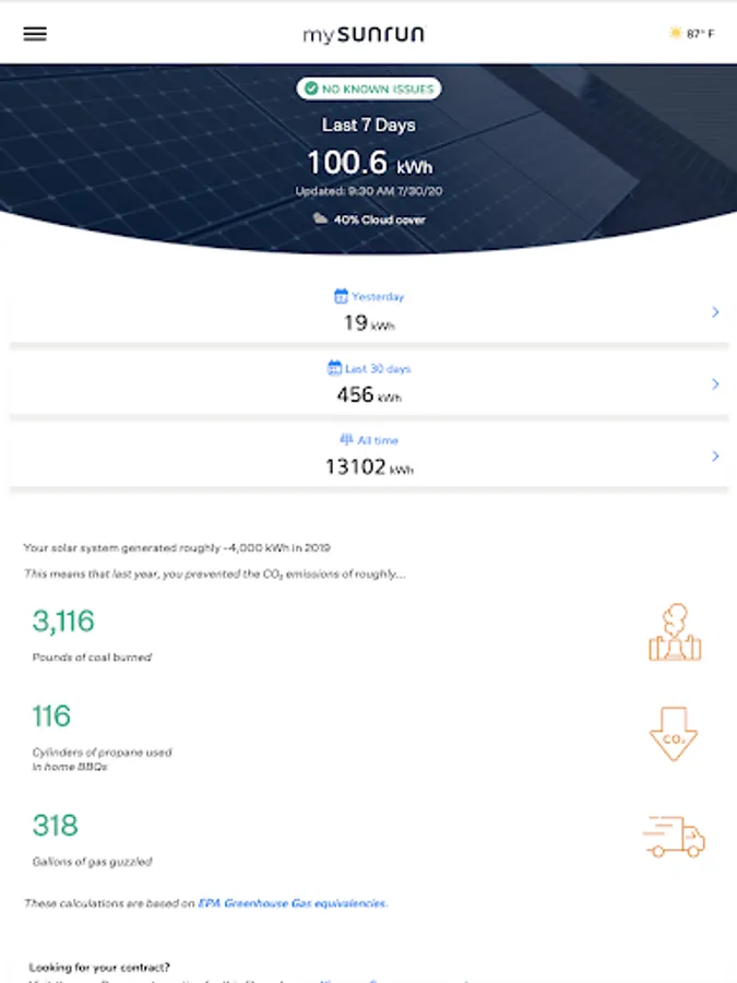 The mySunrun app is the single access point for Sunrun solar customers to monitor their systems, better understand their home energy profiles, and take care of business (like paying a bill or locating important documents).
