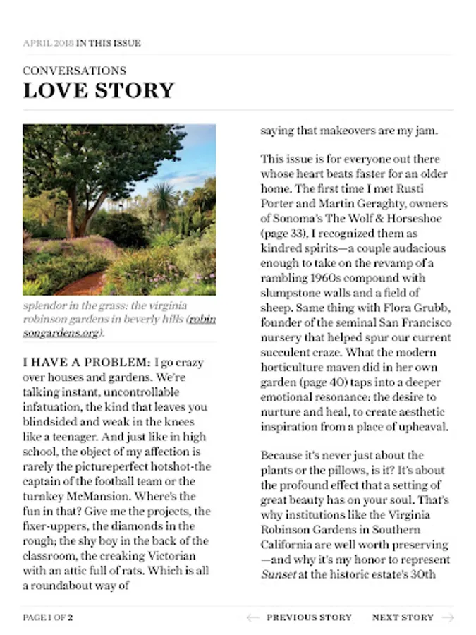 • OFFLINE READING: Download and flip through entire Sunset magazines to your device to read them whenever and wherever you want, even without an internet connection.