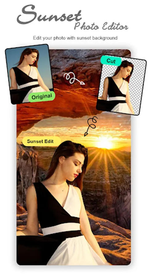 Sunset Cut Paste Photo Editor - Just one click to change your background with sunset.