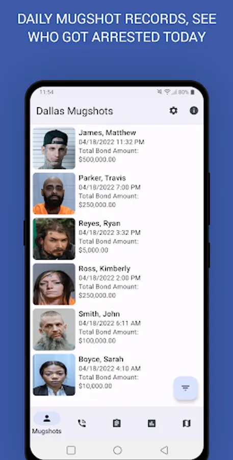 • Get real time notifications when new mugshots are available