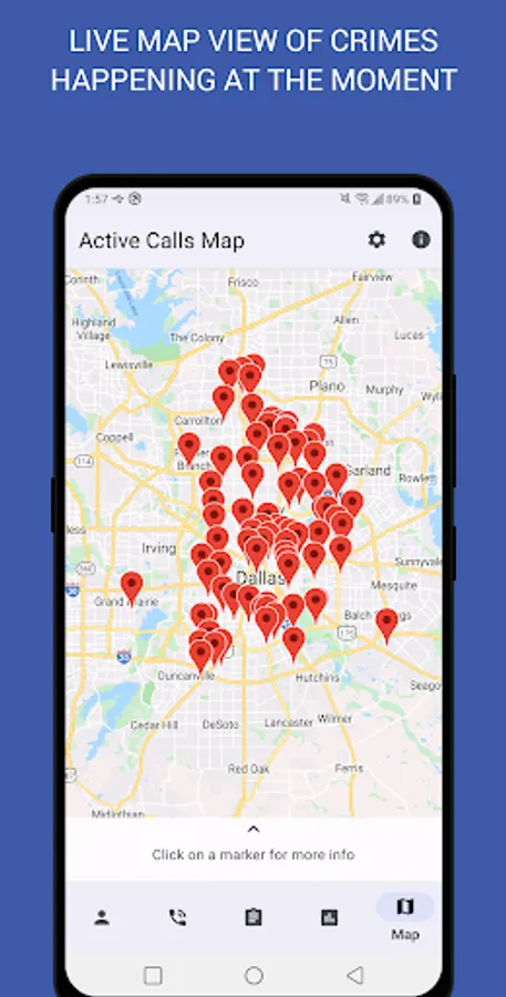 • Get a live look on where crimes are happening in the DFW area by seeing them mark on the map