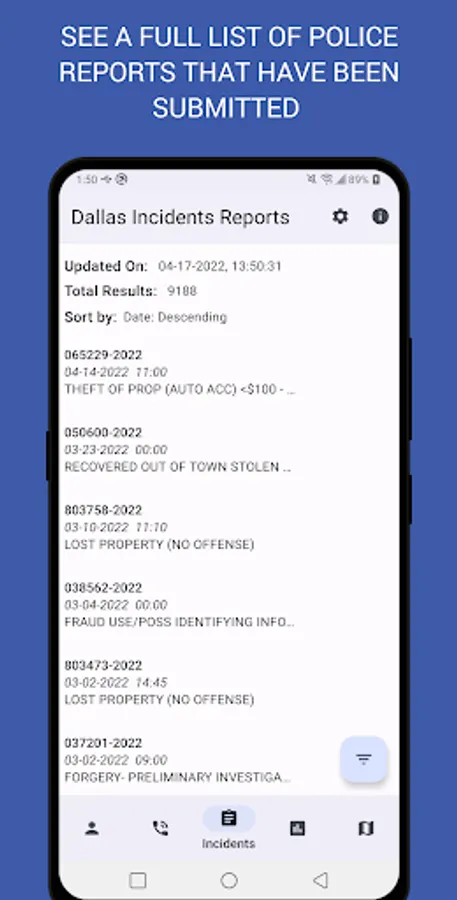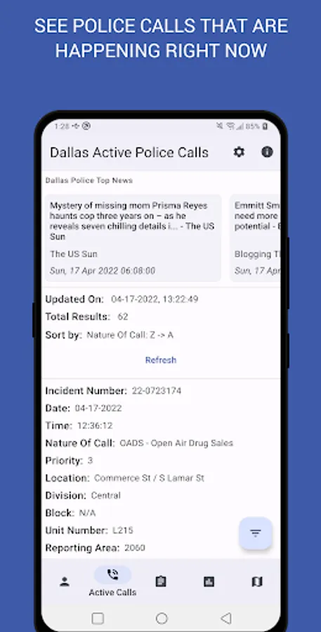 • Get real-time updates of active police calls, police reports submitted, and informational statistics on crime activity happening in the DFW area