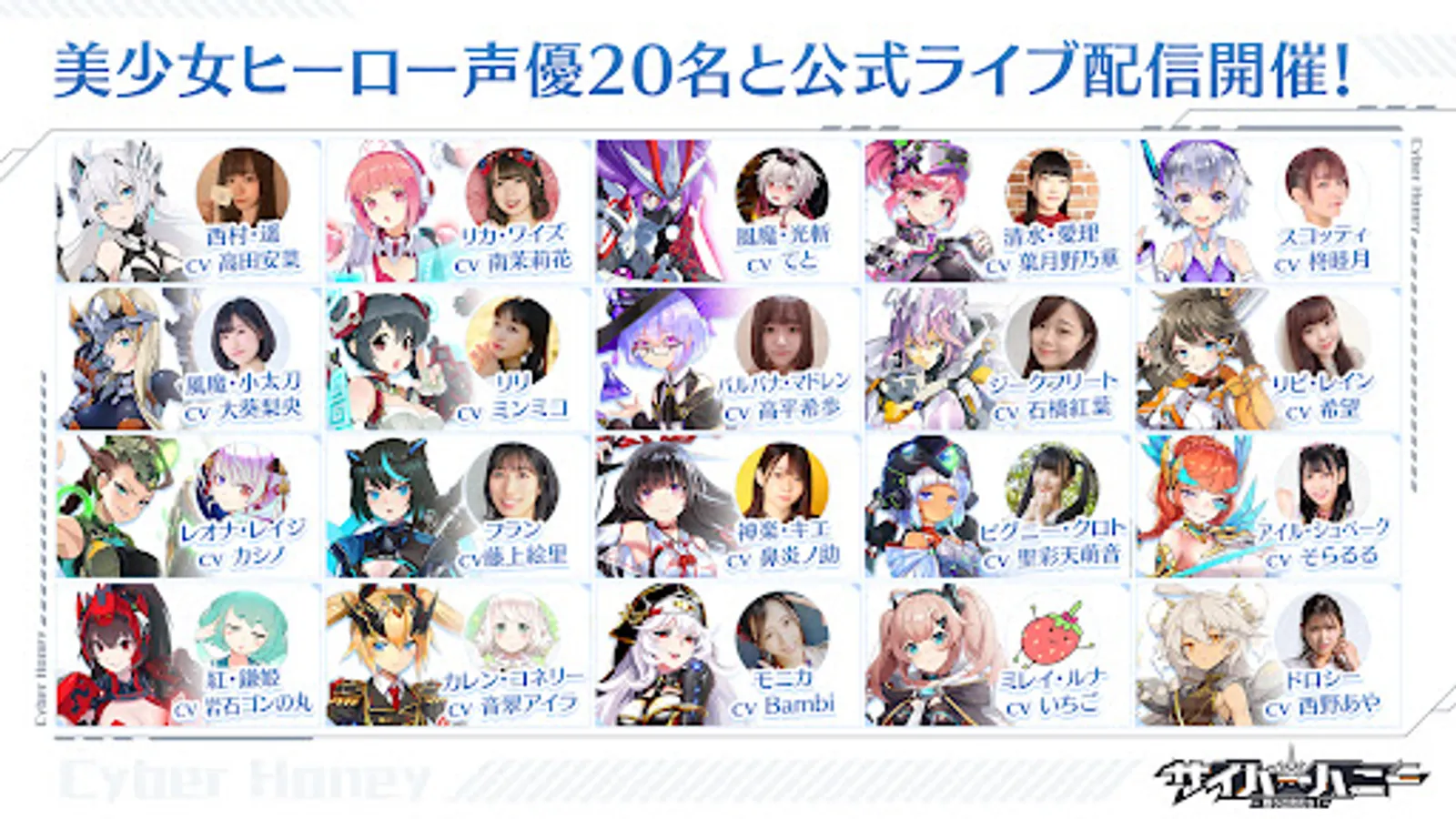 Voice actors auditioned as "Cyber Honey Official" will perform live distribution and game distribution.