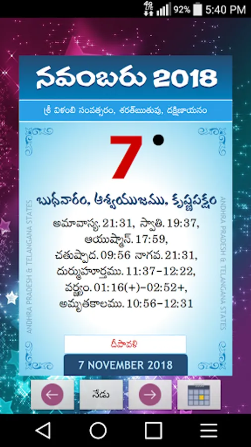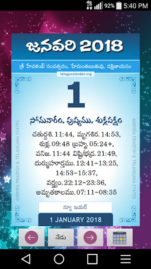 Calendar image is courtesy of http://www.telugucalendar.org. Telugu Daily Calendar app nor TeluguCalendar.org does not warrant the correctness, completeness or the accuracy of the astrological information provided. By using this app, you agree to use it at your own risk and discretion and no one else, but you, will be liable for any consequence.