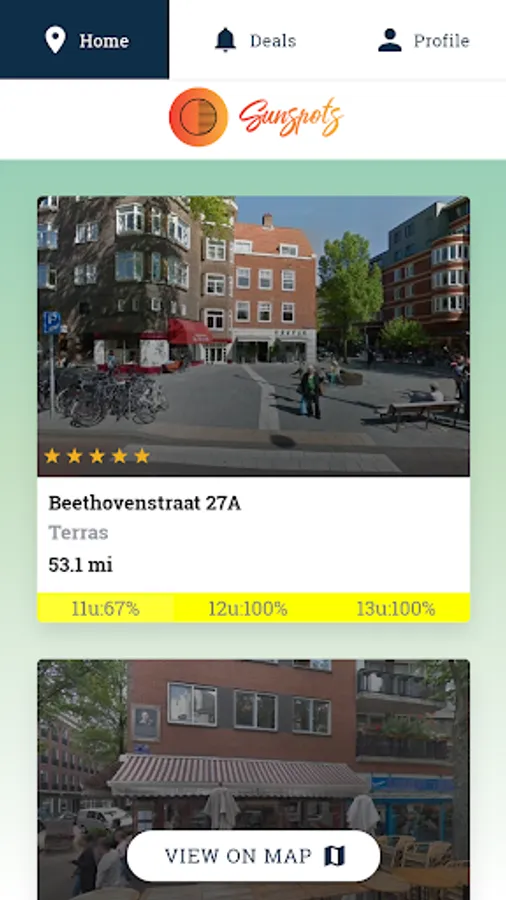 Where do you drink a cup of coffee in the morning sun? Where do you enjoy the sun in the afternoon? Sunspots shows you where the terraces are sunny. And at what time they are.