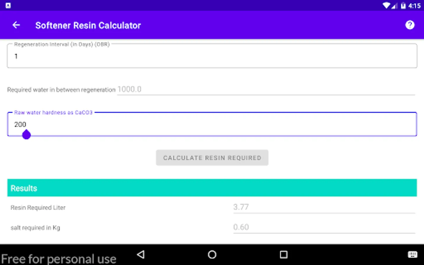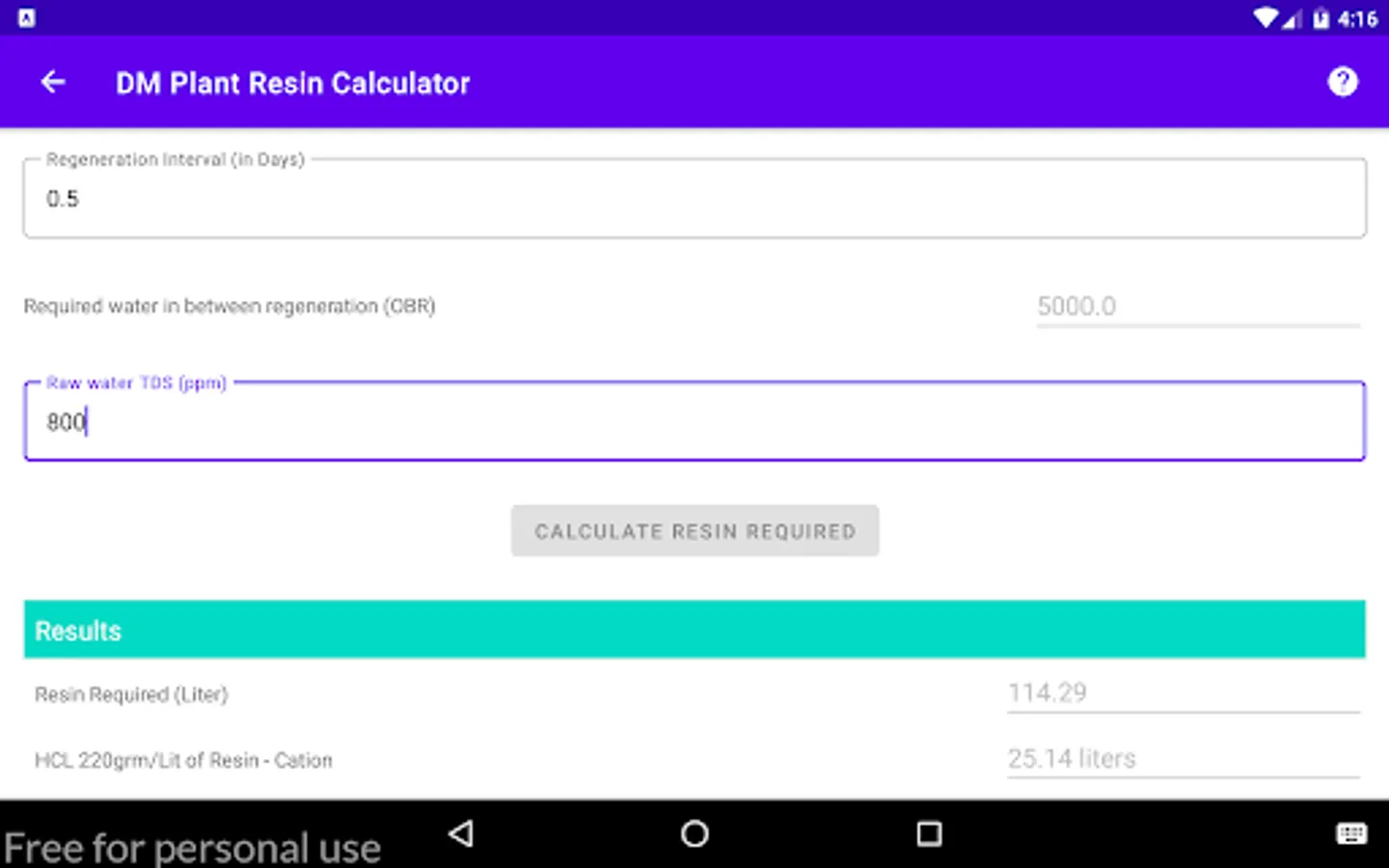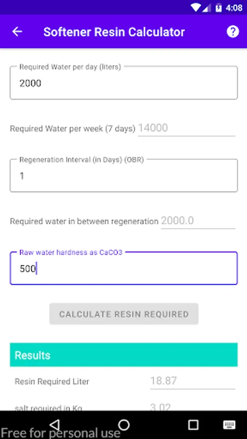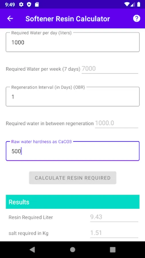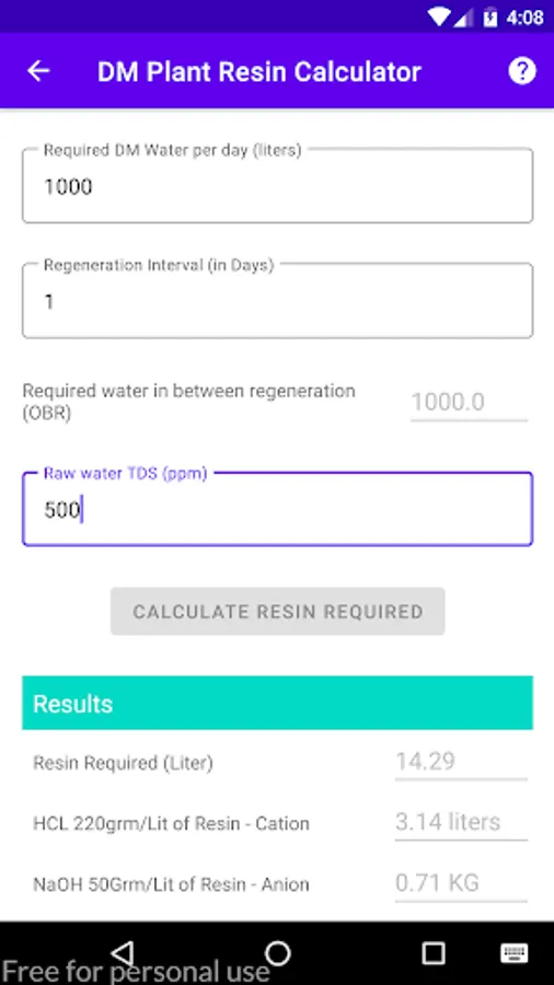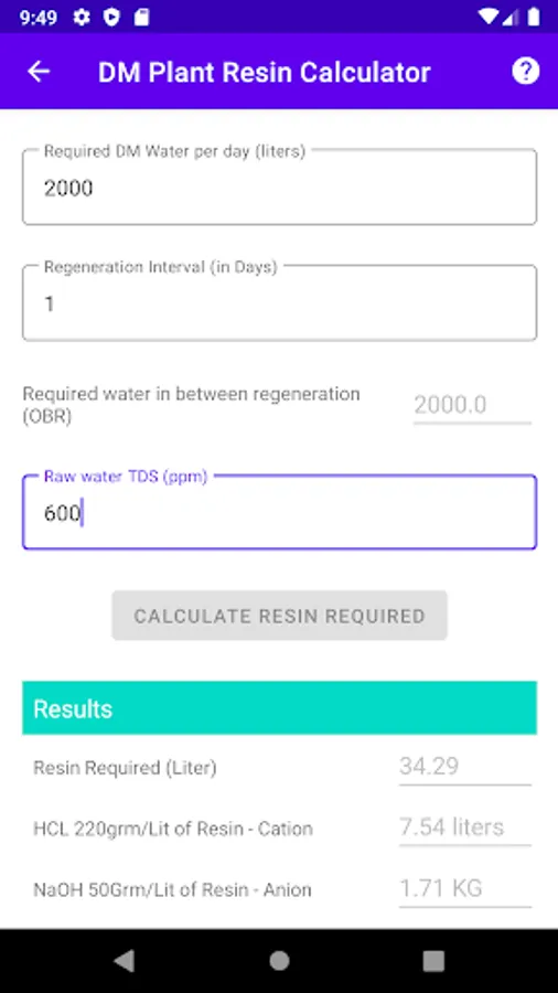 Calculate the quantity of the Resins required to soften the Hard water for Softener & DM Plants.