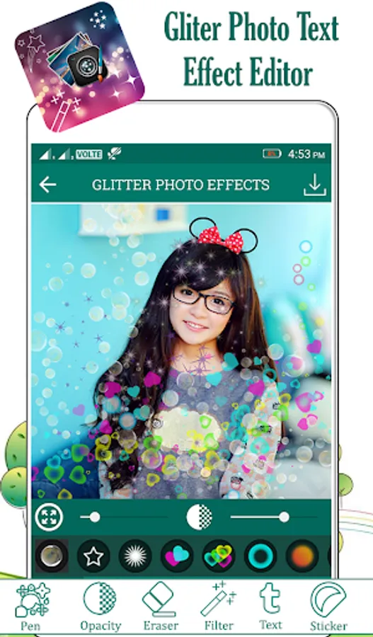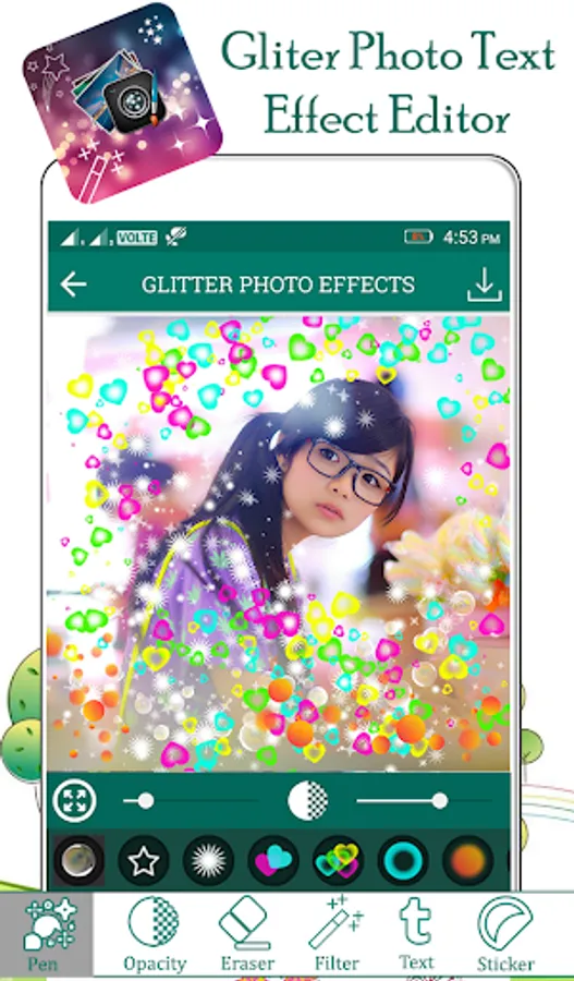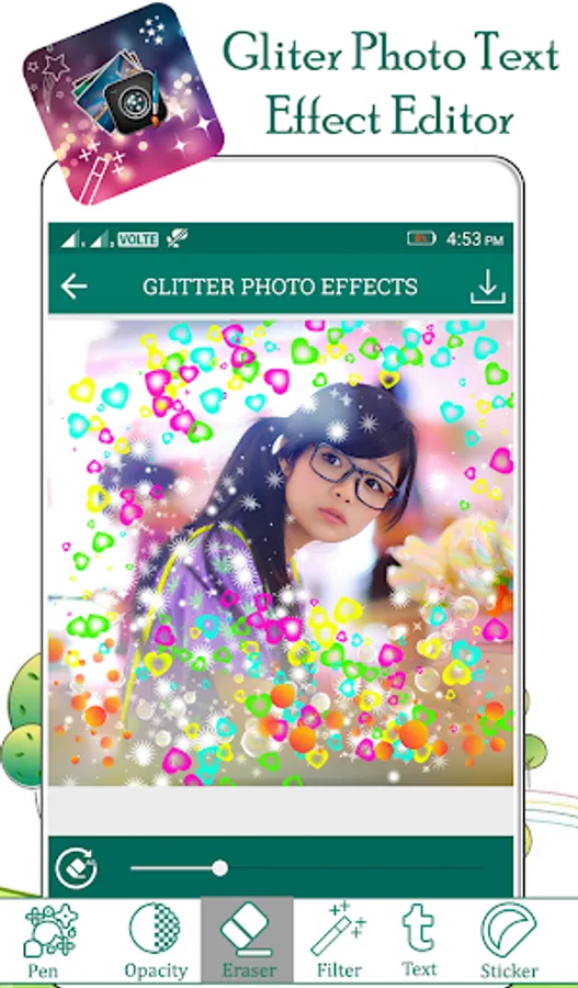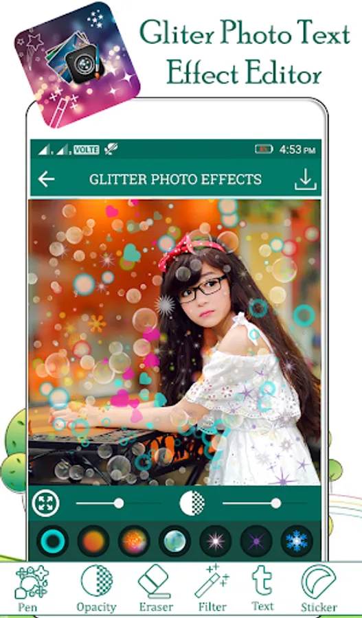 Glitter Photo Effects is a unique combination of Glitter Photo Effects and Pixel Photo Effects which allows you to New Creation On Google Play store Glitter Photo Effect Picture.