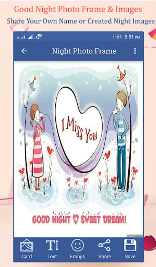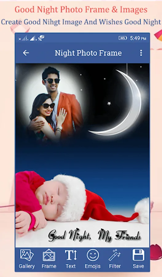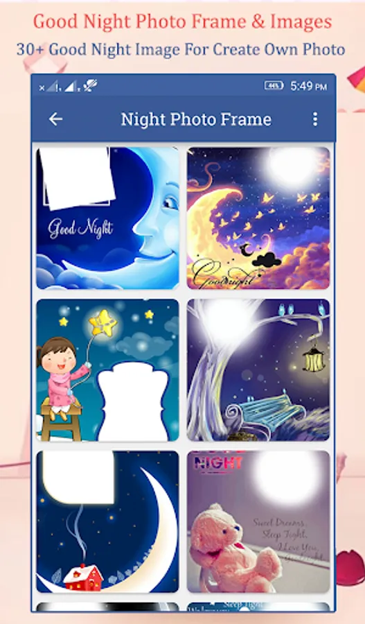 Download now popular and free photo frames for Android device - good night picture frames. You will have beautifully decorated pics and at the same time memories that never fade.