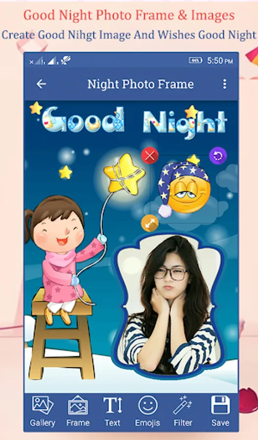 Good Night Photo Frame with Photos to create awesome looking Photo with Nice Scenery to show off how famous you are to your friends.