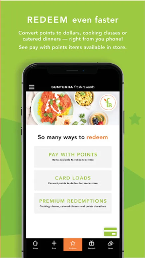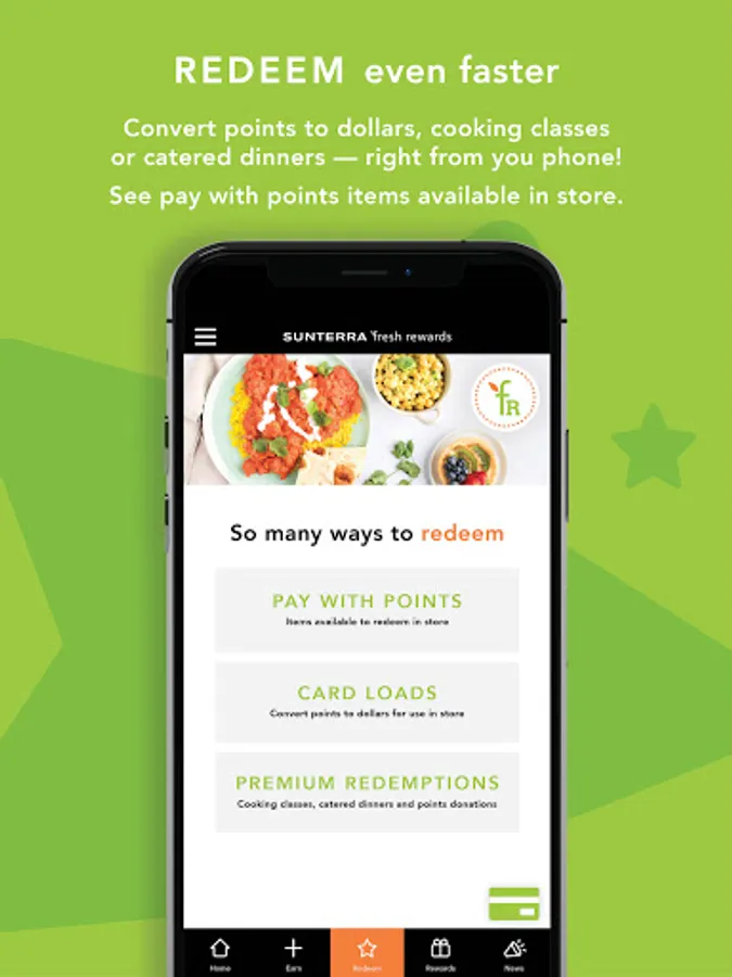 Convert points to dollars, cooking classes or catered dinners – right from your phone! See pay with points items available in store.