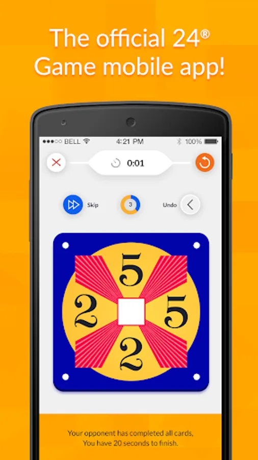 The OFFICIAL 24® Game app is here from the makers of the popular 24® Game! Now you can challenge friends and opponents around the world to compete in in real-time matches!