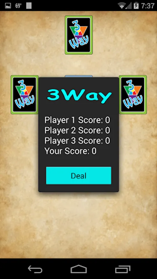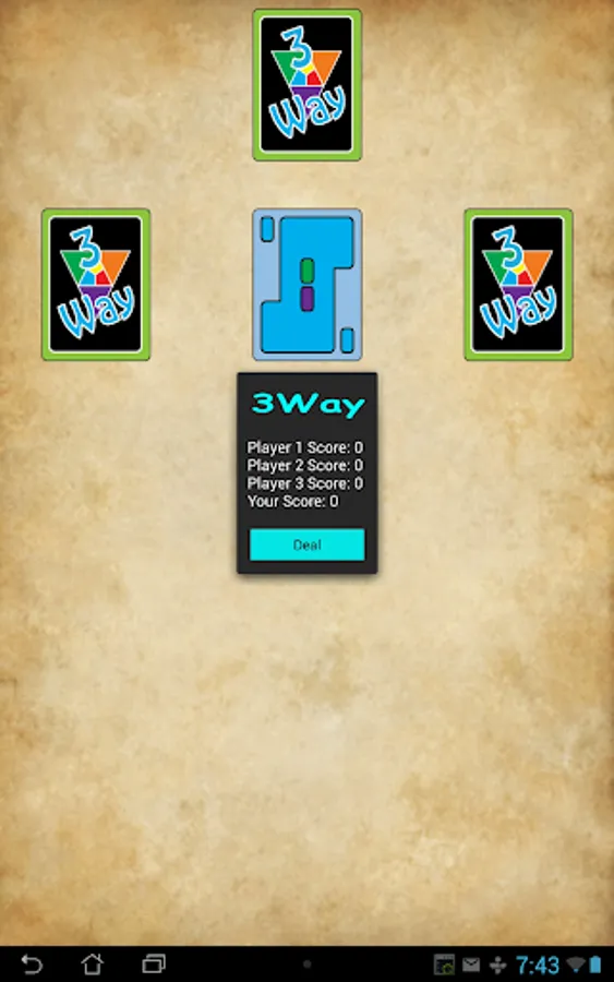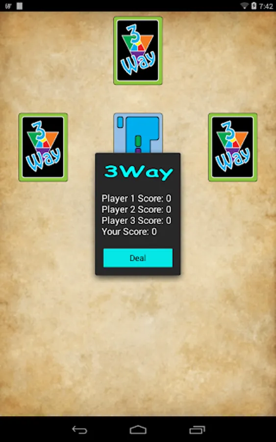 The objective of 3Way is to get rid of all your cards before your opponents do, and to score the lowest number of points. Each person in turn plays one or more cards on the top card of the DISCARD pile. If no card can be played then the player draws one card from the DECK. The player may play that card if he can or else he adds it to his hand. Play continues to the left until one player has played all their cards, and then the hand is over.