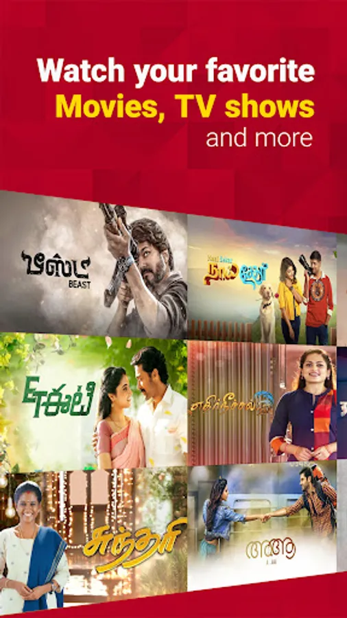 Experience the latest blockbusters from the South like "Beast," "Etharkkum Thunindhavan," "Annaatthe," "Doctor," "Ala Vaikunthapurramuloo," "1945," "Pratheekaaram," and "Love You Rachchu." Anticipate upcoming hits like "Thalaivar 169," "Thiruchitrambalam," and "VJS 46." Revisit the golden era of cinema with classics from the '90s, '80s, '70s, and '60s.