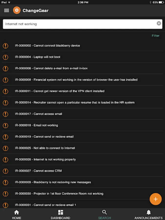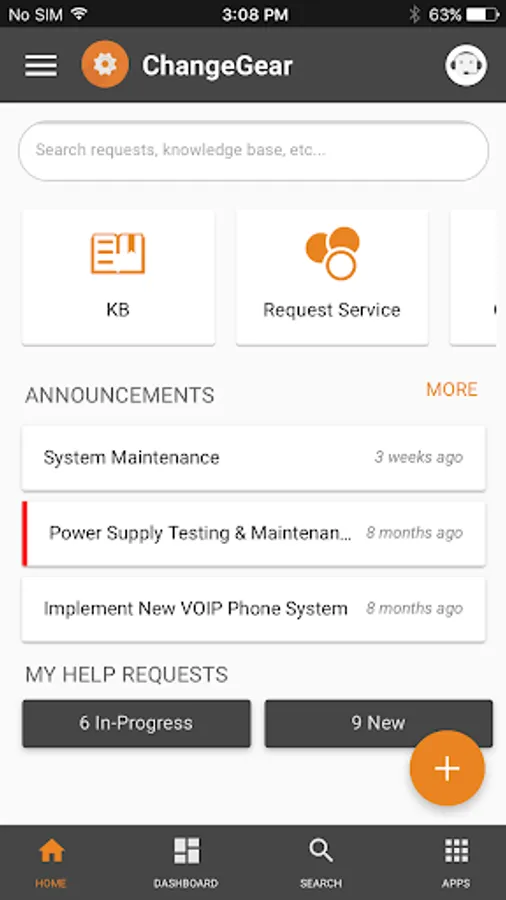 ChangeGear for mobile provides a completely dynamic experience for IT staff and end users that want to quickly monitor and access their ITSM services from anywhere and at any time from their mobile device. Whether it's submitting requests, checking the knowledge base, interacting with the chatbot, or keeping an eye on productivity, ChangeGear for mobile is the most convenient way for users to interact with the service desk and all its associated processes.