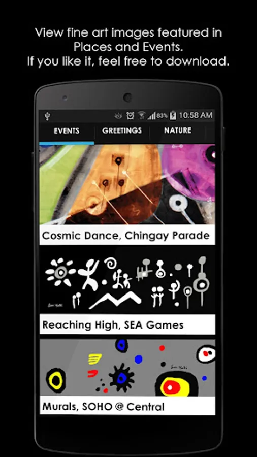 Do note that downloading of images from ArtChat is for use as stickers and wallpapers in and across mobile devices. Use of the images in its entirety or part thereof onto other mediums is prohibited and considered as infringement of copyright.
