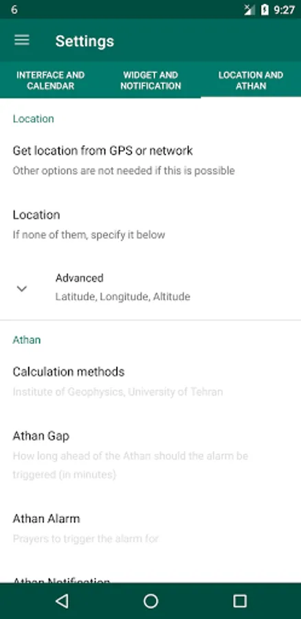 The users have also full control of the application by selecting the right options from the settings. The settings also have the list of Afghanistan provinces to select to have the right prayer times. Users can also enter the GPS coordinates to have their exact location, and the application also can automatically fetch the right GPS coordinates using a GPS device.