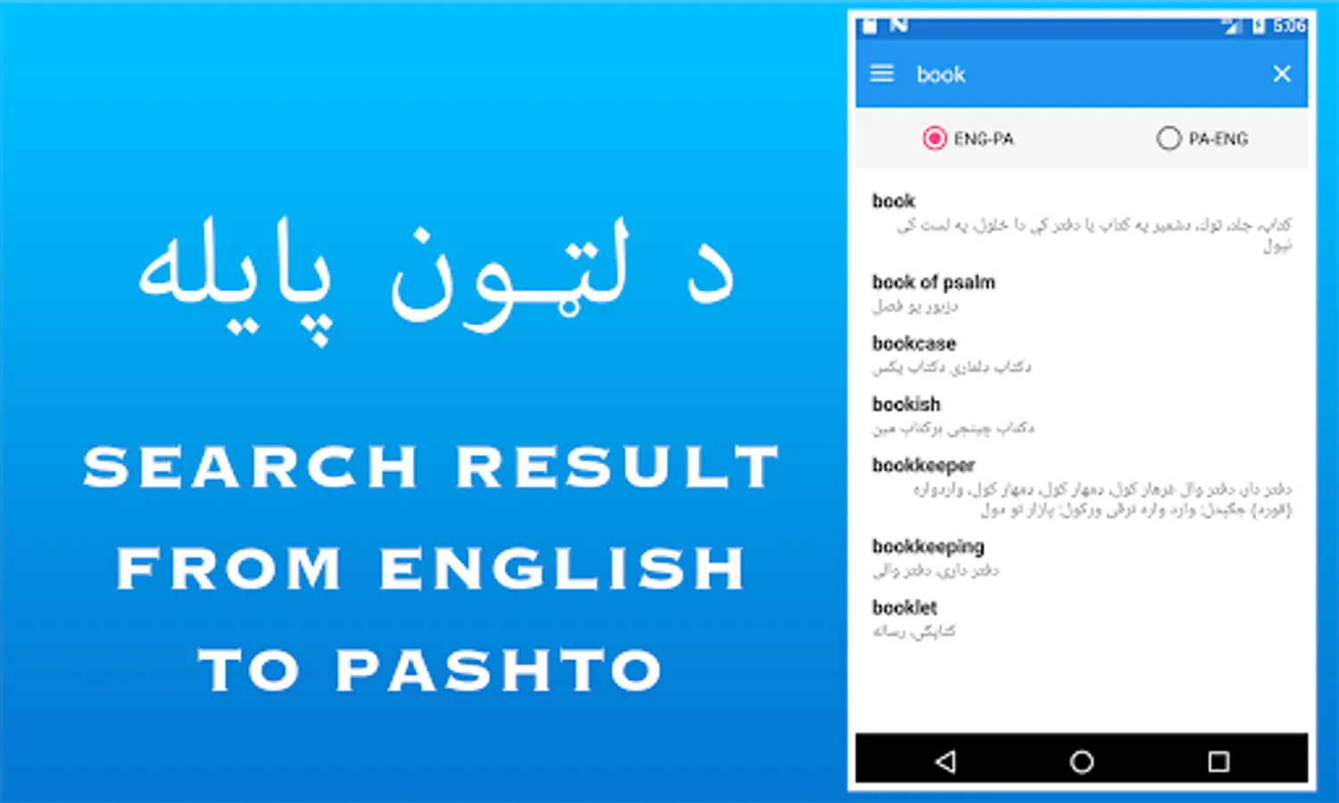 Prerequisites: Please install Pashto Keyboard to search for Pashto words. We are also offering Afghan Keyboard on Play Store for free.