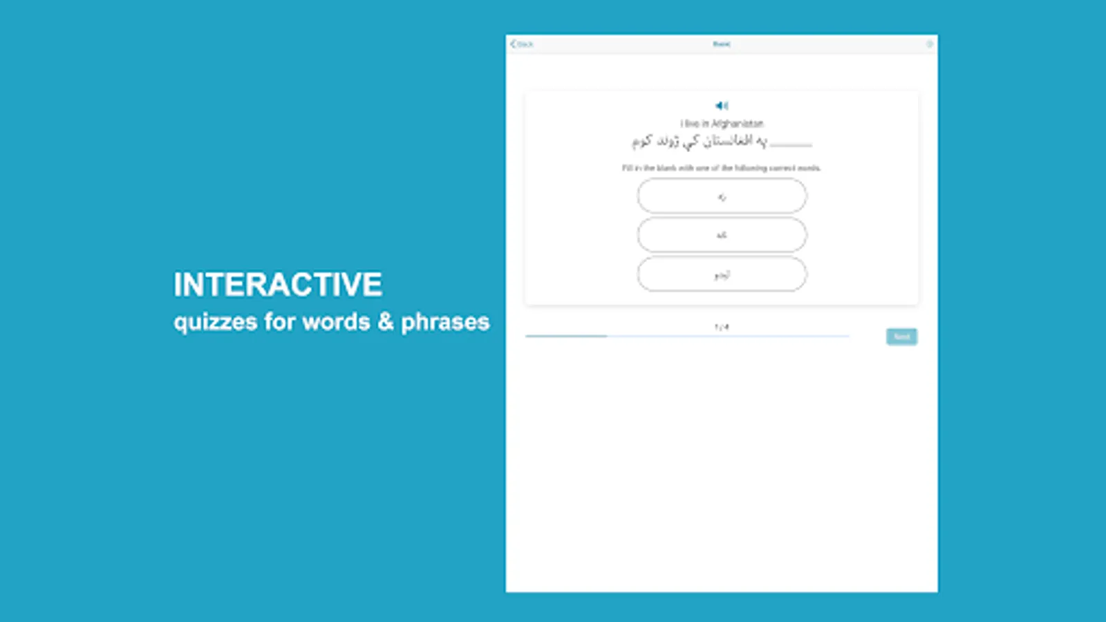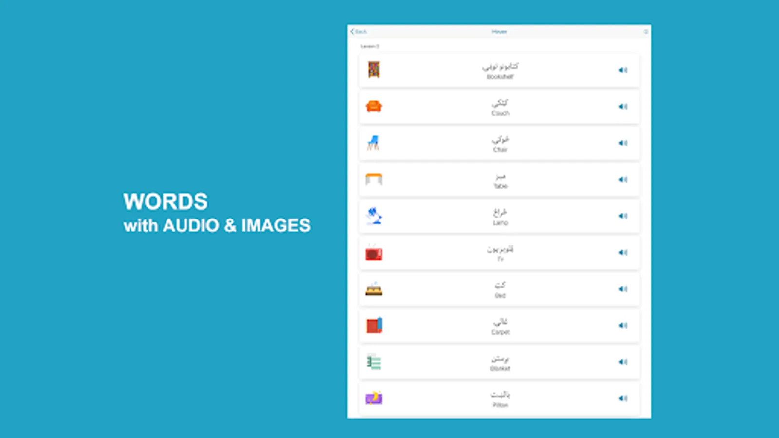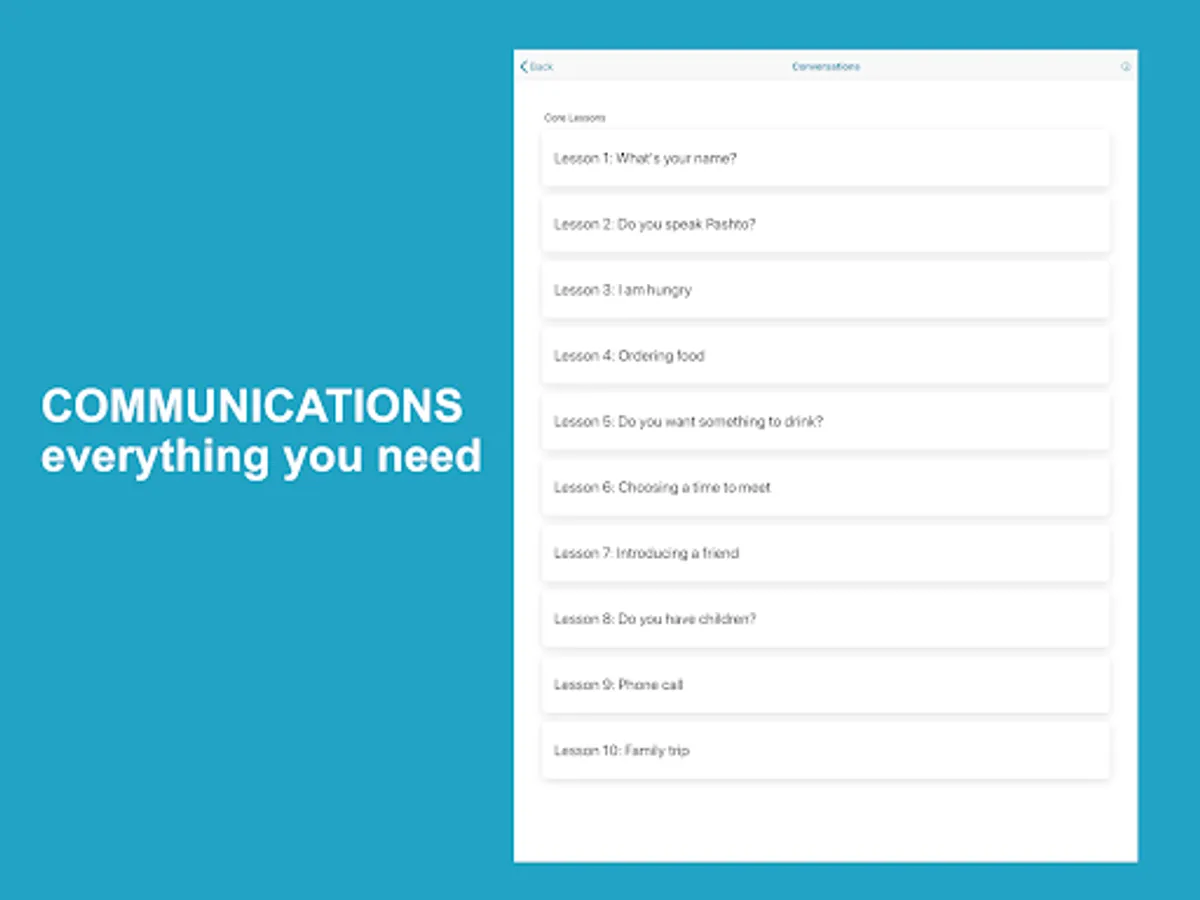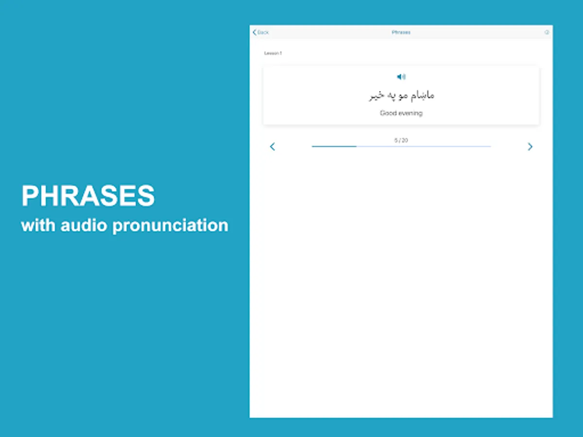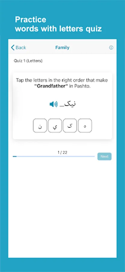 Learn Pashto application helps non-Pashto and Pashto speakers learn and improve Pashto language skills. The app has complete materials to help you learn fast and accurately. The app divides lessons into words, phrases, conversations, alphabet, numbers, reading, grammar, and quizzes with Pashto audio pronunciation and images for each word.