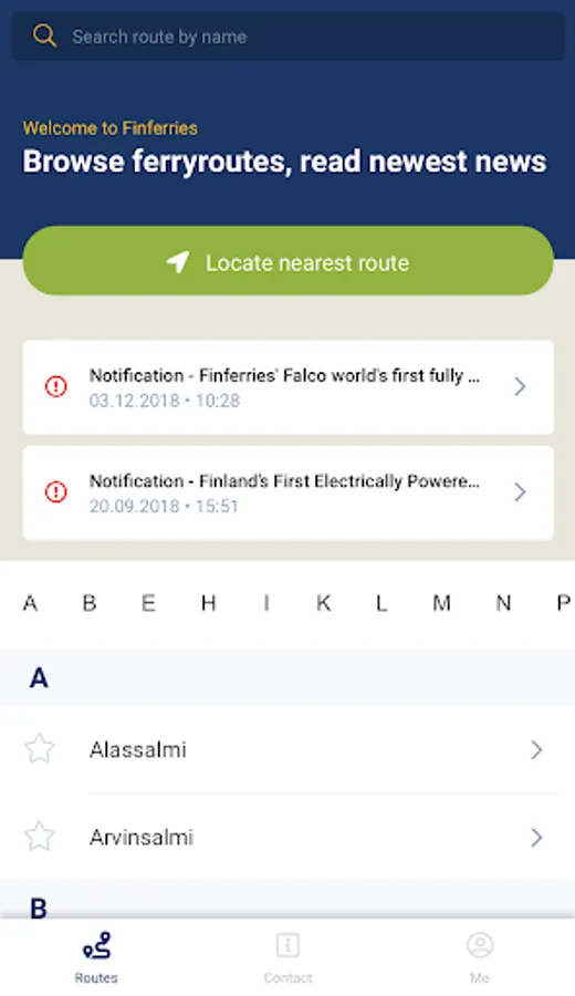 Finferries operates ferries, cable ferries and commuter ferries along more than 40 routes all over Finland. Finferries’ mobile app is a handy way to receive ferry traffic news and timetables directly on your phone or by e-mail!