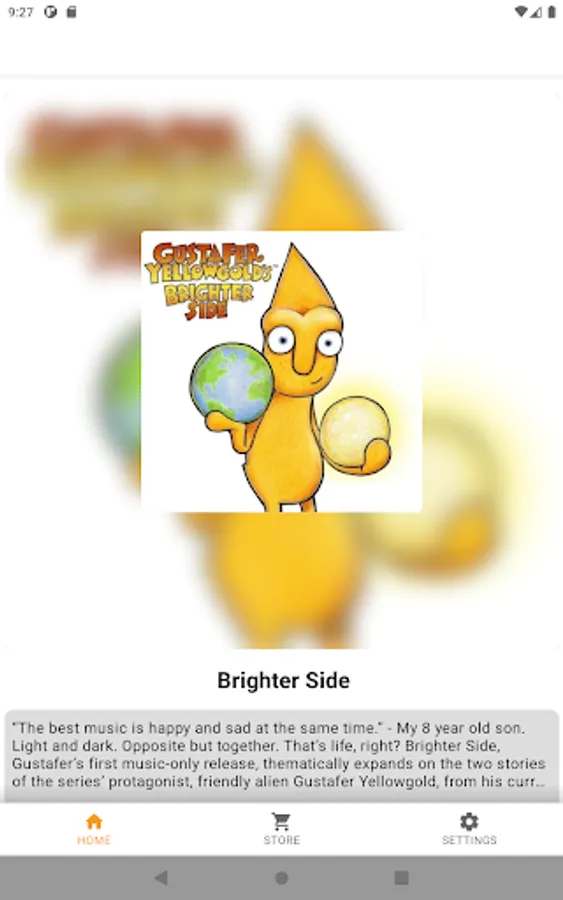 The illustrated music video collection chronicles the exploits of Gustafer, a friendly yellow alien who has come to Earth from the Sun to live out an explorer's life in an anthropomorphized version of the Minnesota woods.