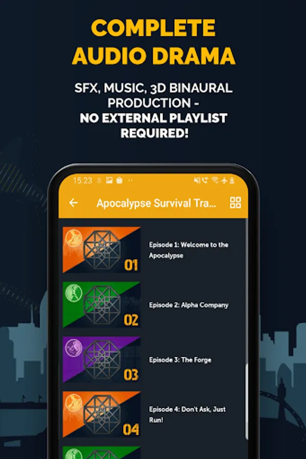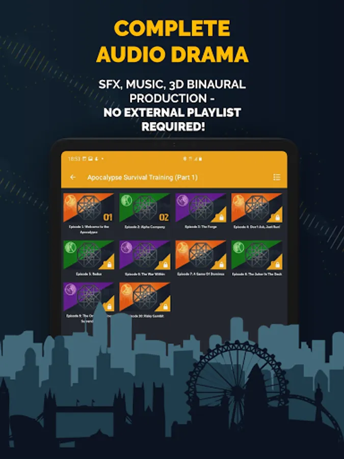 Get active and stay focused on your fitness as you enter a high-stakes fantasy world of alien invasions, time travel, secret organisations, and a dangerous mission, all narrated in a full-cast audio drama. With a continuous storyline, detailed workout instruction, dramatic sound effects and a driving soundtrack all processed into binaural 3D sound, placing you literally in the centre of the action, this is an unparalleled immersive exercise experience.