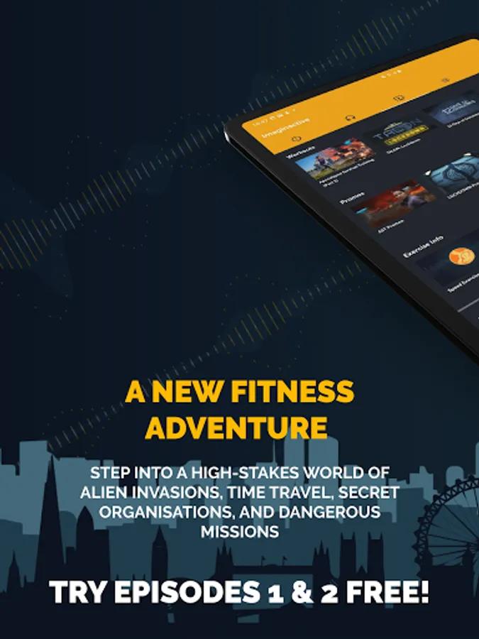 Looking for a completely different home workout app? Wish exercise could be more fun? We made this app for you! Let Imaginactive transport you into an alternate reality in which you are a super secret agent who must save London - and the world - from an apocalyptic alien invasion. Be immersed in one epic story unfolding across three types of workouts - running, bodyweight circuits and yoga stretch - to get you apocalypse-ready.