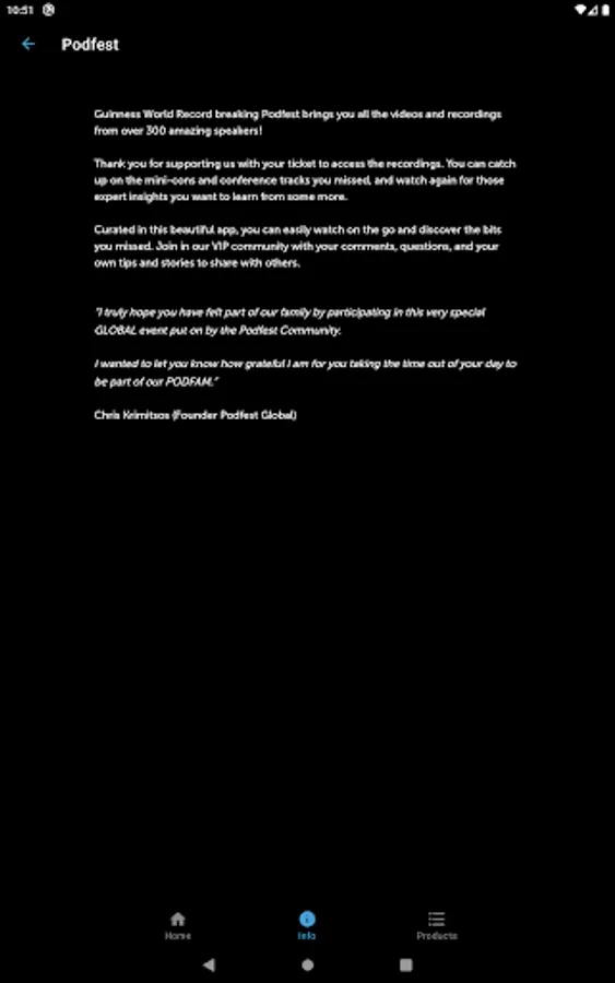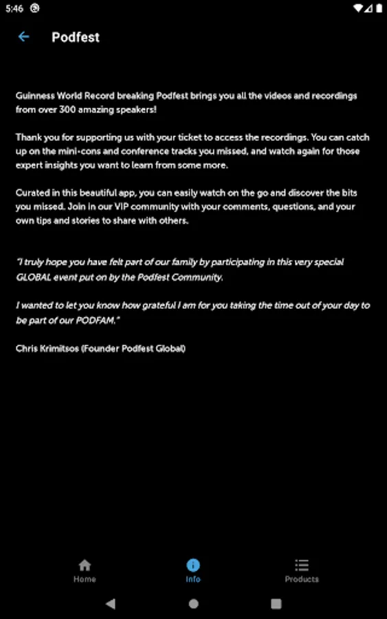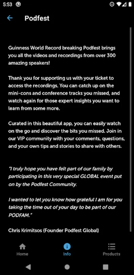 “I truly hope you have felt part of our family by participating in this very special GLOBAL event put on by the Podfest Community.