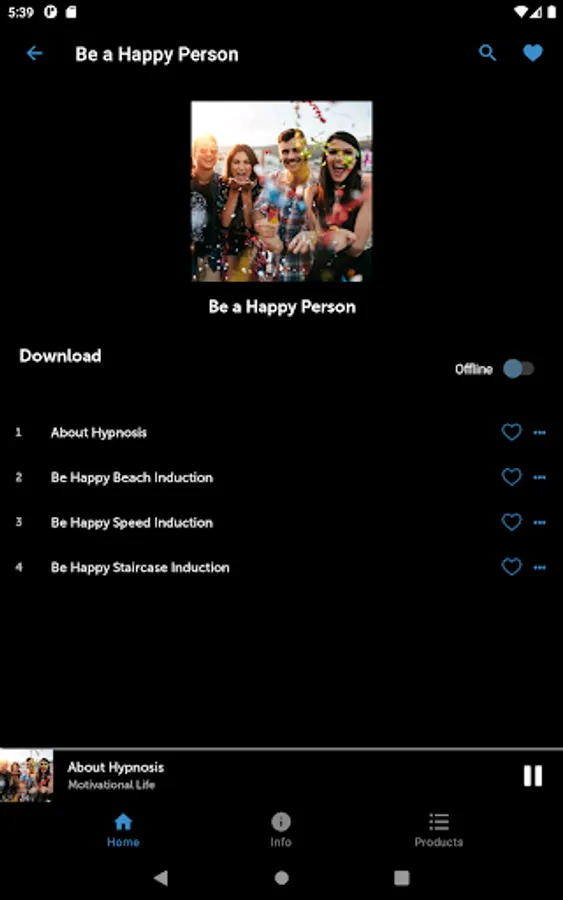 * Add tracks to your favourites playlist and download them to your device for offline streaming
