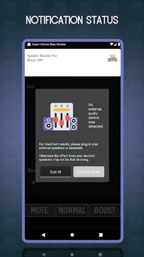 With our music booster app, you can easily boost all your phone sounds to a maximum value to get the best experiences while listening to your favorite music or simply to hear your phone while ringing even if you are far from it.