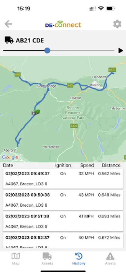 History - Playback vehicle or driver journeys, including auto playback option.