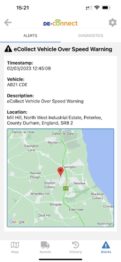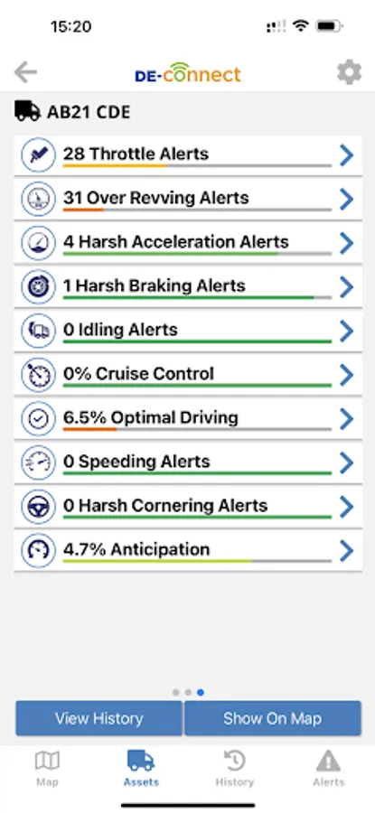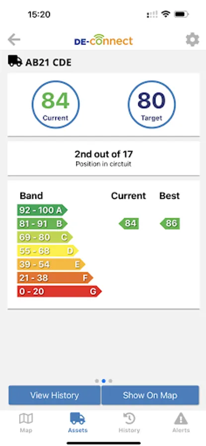 The DE-Connect mobile app also allows drivers to login and view their driver behaviour data, including EEDI scores, alerts and MPG.