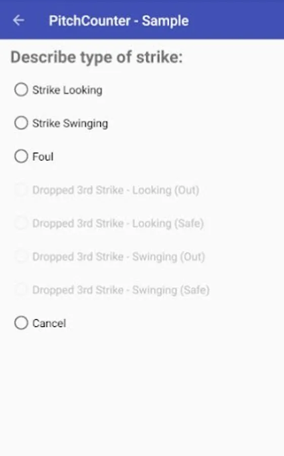 Strike – dropped 3rd strike swinging – out (only available when there are already 2 strikes)