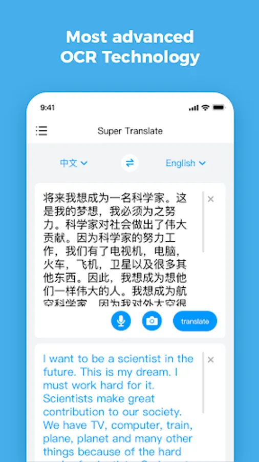 Super Translate is the leading translation and dictionary application. Easily translate text or start voice conversion, supporting multiple languages. With the new model, you can use Super Translate anywhere without paying expensive roaming fees.