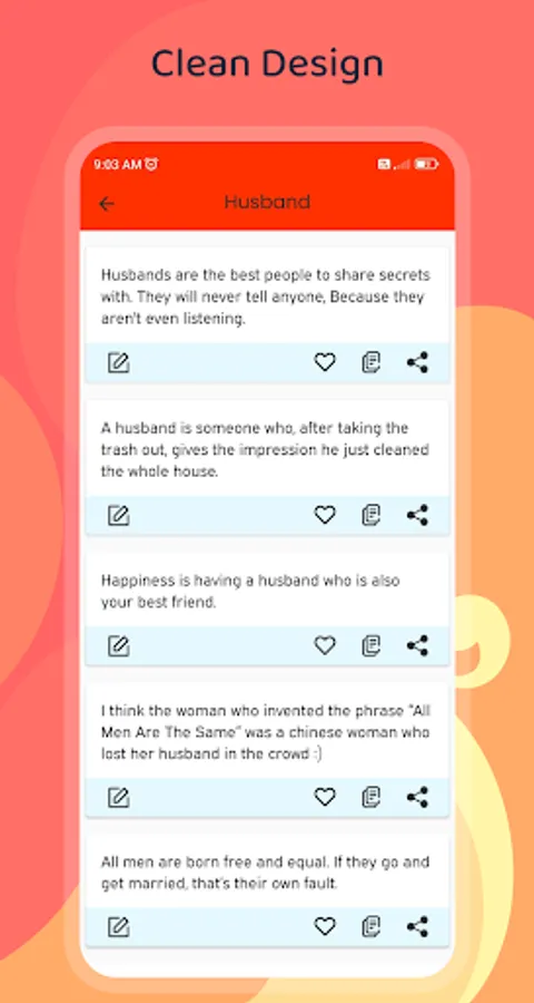 Favorites and Sharing: Mark your favorite quotes and statuses for quick access and create your personalized collection of laughter. Easily share the funniest quotes directly from the app to your social media platforms, messaging apps, or save them to your device's gallery. Spread the laughter and brighten up everyone's day with just a few taps.