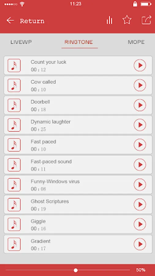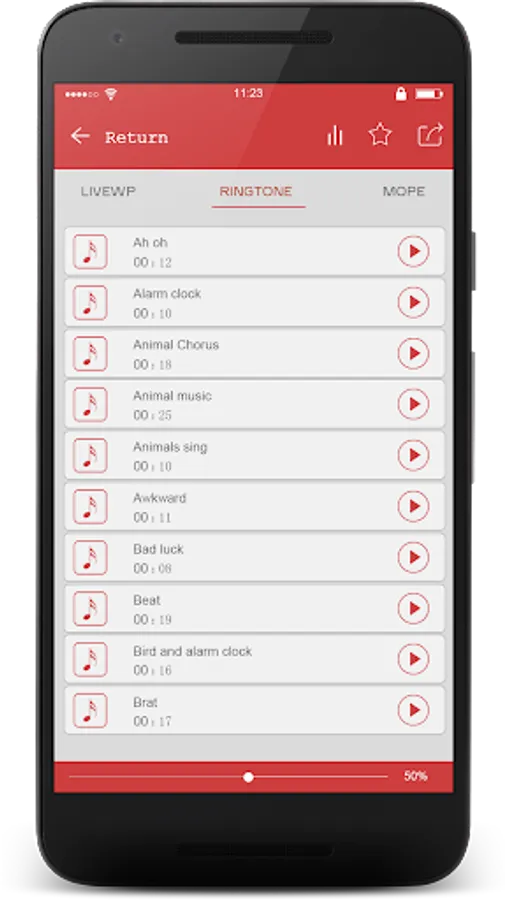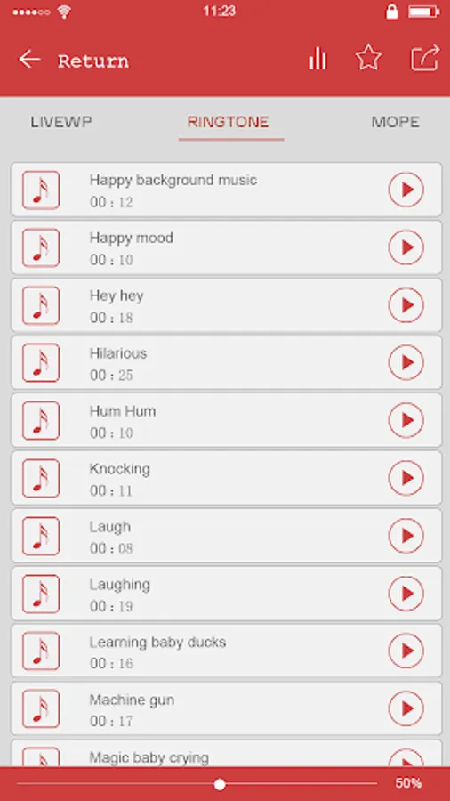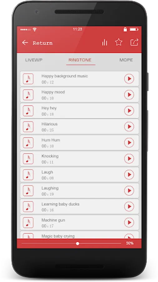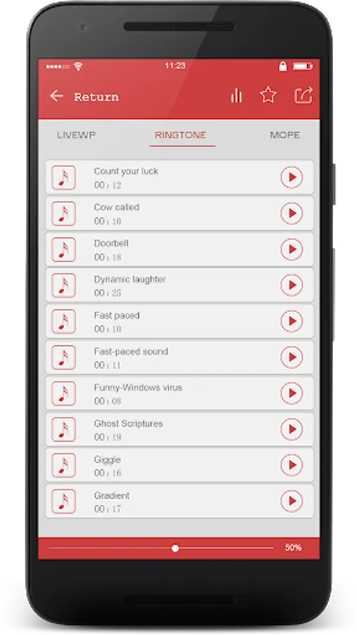 Open this application, you can press the " play " button to listen to the MP3 music. If you like one of the MP3 music you can set it as your default phone ringtones, alarm or notification.