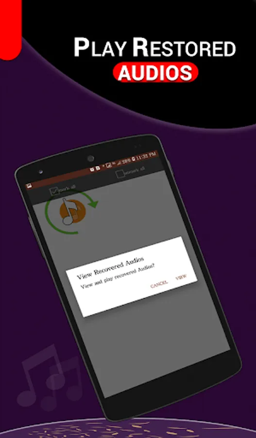 The app will make all attempt to recover deleted Audio files from you phone .However As no root or any special permissions required some devices may not able to recover all Audio files.