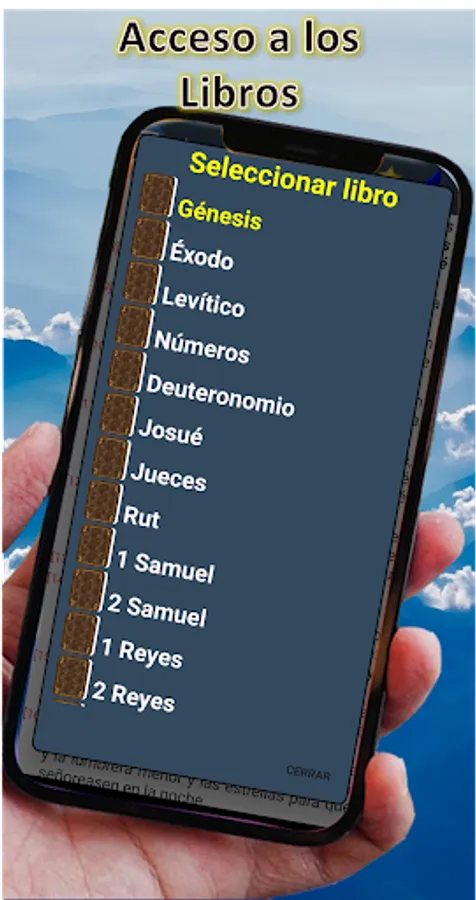 You can click on the screen and in the lower part the name of the book and the chapter will appear, when you press it the list of books will appear and in the other the chapters that the selected book has.