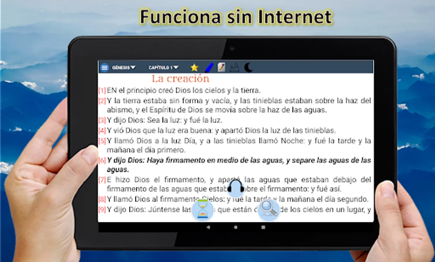 The Search menu will allow you to place a word in a text field and search the entire bible, in the old or new testament, if you specify the search range it may take less time to find matches, but if you select the entire bible it will take longer to find matches. find the results.