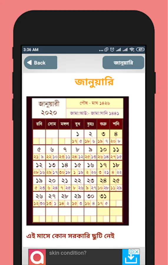 This calendar app helps as a english bangla calendar 2020 that will be a very good helper of calendar 2020. As an arabic english bangla calendar it serves like a calendar bangla english arabic 2020. This calendar 2020 bd app is a nice collection of arbi bangla. english calendar which is a nice all calendar app that provides english bangla arabic calendar 2020. is a magnificent bangla calendar 2020 app which will be a nice english bangla and arabic calendar for 2020 users and it will help as a pocket calendar 2020 bd which is designed with an amazing interface that will make a good one for users.