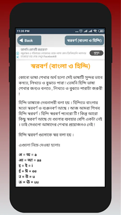 Learn Hindi in Bangla app about learning hindi in bengali which will be useful for learning Hindi language. Learn Hindi Language as Bangla This Bengali application learn hindi language in bangla will help us to easily learn Hindi language in various ways. Learn Hindi language easily This Bangla app on Hindi language education will help you to learn and speak Hindi as an easy way to learn Hindi.