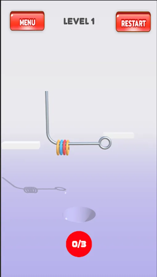 Spin the Metal shape and drop all the ring in the hole.Some shapes are tricky so you have to control rotation and speed. use Precision and timing to spin the shape the right way to get the rings off