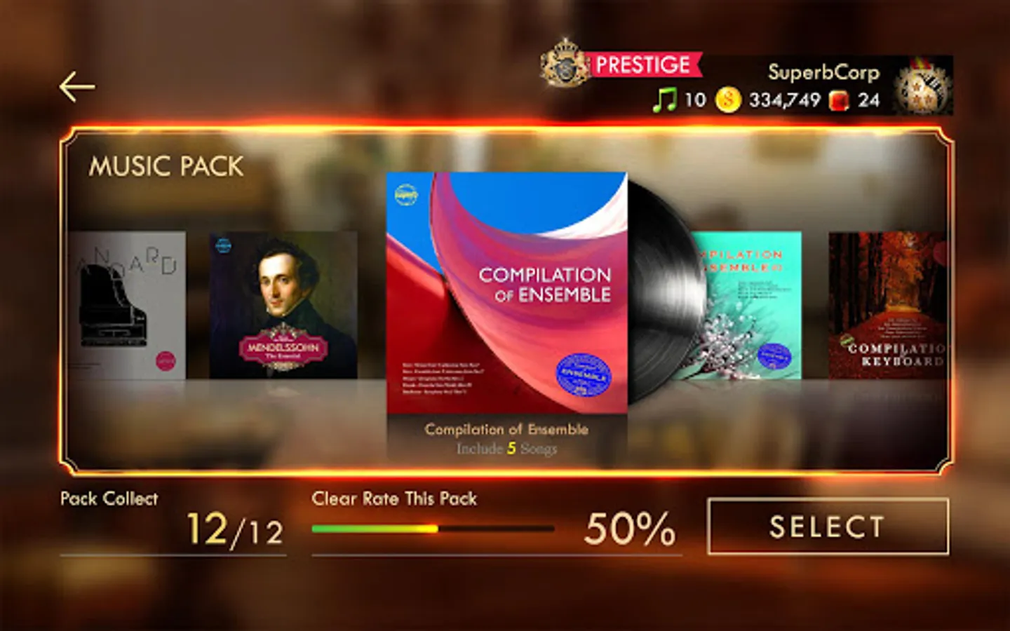 Clear every stage of the music packs to become a virtuoso.