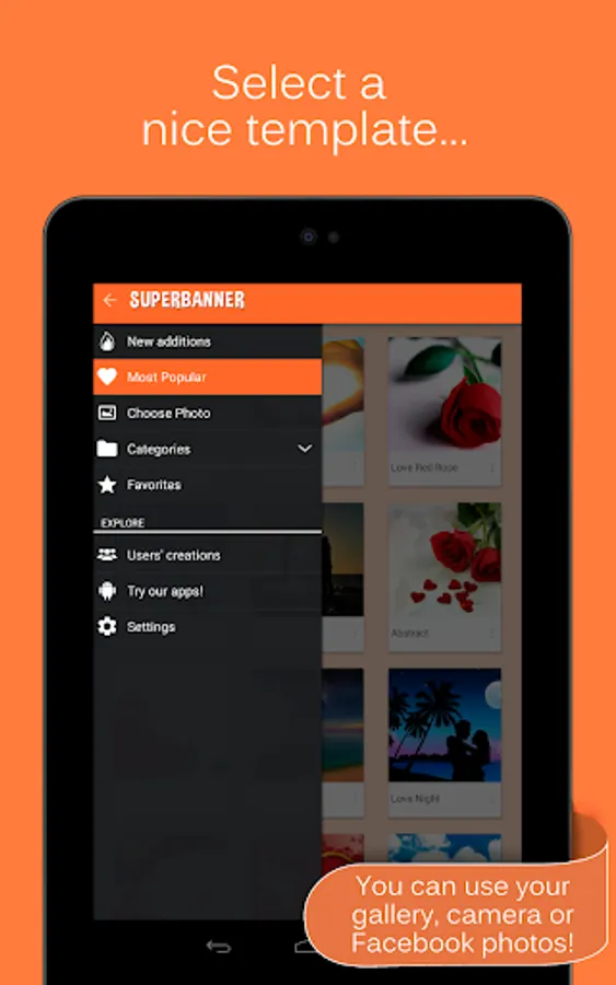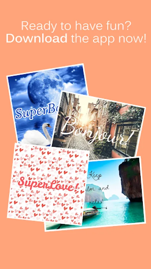 Create beautiful banner messages and immediately share them with your loved ones! Add a message to your best photos or choose among our huge variety of backgrounds and make awesome custom banners to share with your friends! We have thousands of fonts and textures for you!