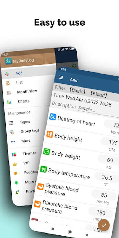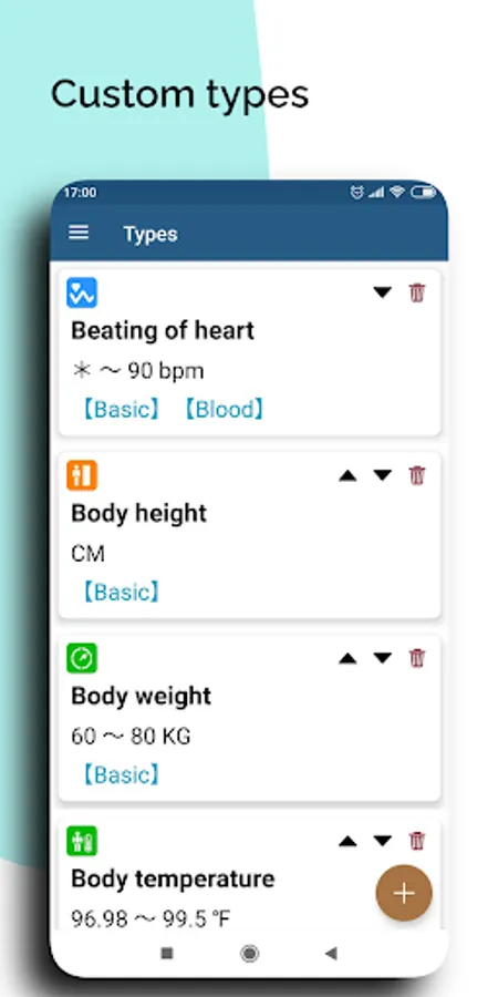 ★ Custom types: height, weight, vision, pulse, blood pressure, blood sugar... etc.