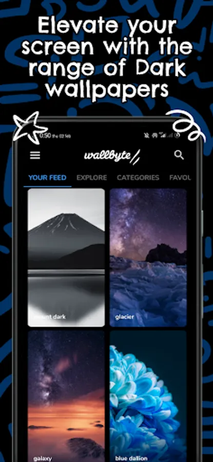 Unlock the beauty of the dark with Wallbyte - the ultimate wallpaper app! Explore a vast collection of stunning dark wallpapers, each handpicked for its unique style. Whether you're looking for inspiration or want to find the perfect background for your device, Wallbyte has you covered. With its easy-to-use Home, Explore, Categories and Favourites sections, you can find the perfect wallpaper in no time.