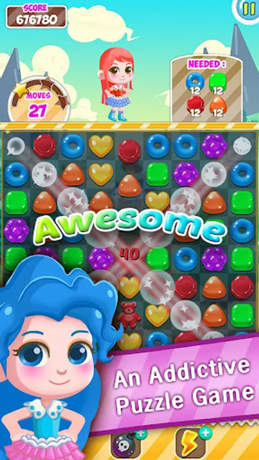 Sweet, cute candy friends awaits you in the adventure! Candy, CRUSH, & MATCH three and four candy like jewels in this offline available free puzzle game.