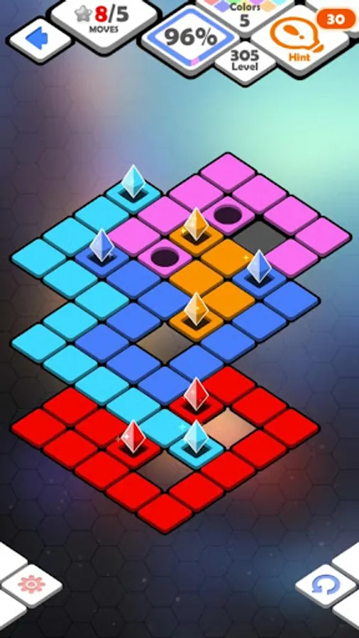 The goal of the game is to connect the same colors. To complete the Color Link Puzzle, you must connect all of the colors. If the cuby of all colors completely connect, Color Link Puzzle is success.