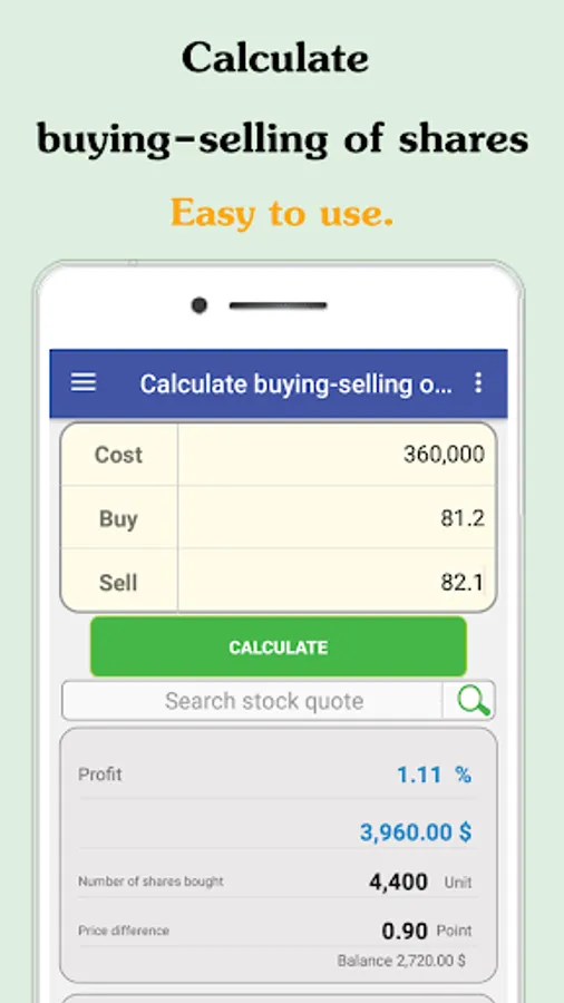 - Easy to use. Can specify the Cost, buying and selling price and calculate immediately