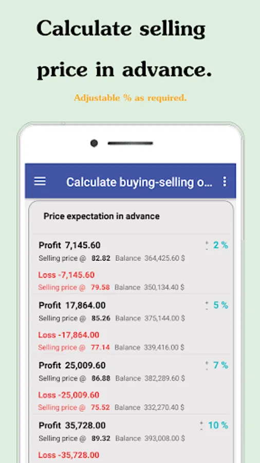 - Calculate selling price in advance, provide complete details showing in per cent of money and price wishing to sell. Easy for making profit.