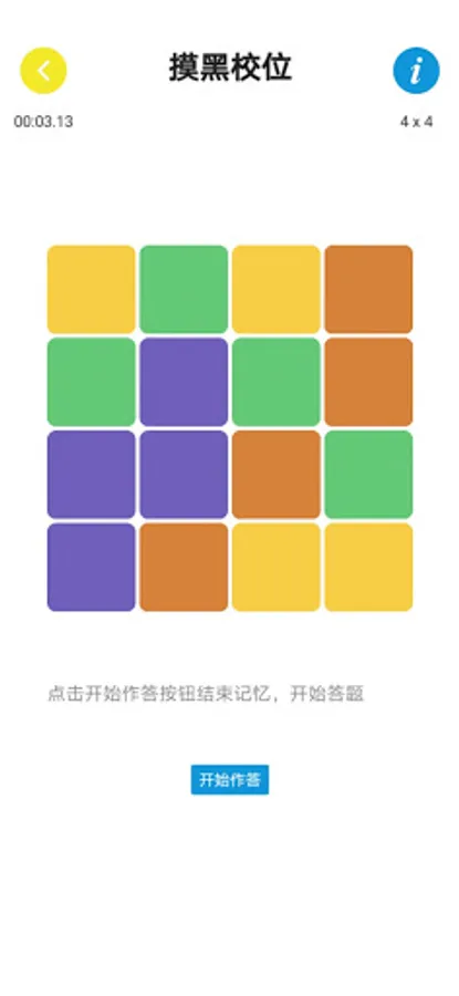 2. After the player observes the memory for a limited time, after "starting to answer", all the card colors will disappear;
